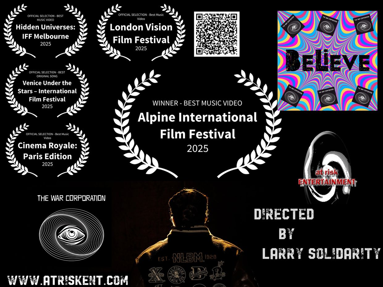 Founded in 2009, At Risk Entertainment is a content creation corporation. We develop and produce motion pictures, series, animation, music, and podcasts. LARRY SOLIDARITY heads up the team. As a writer, director, and producer, he has worked on several indie feature films and participated in Sundance Collab Feature Film Program, Directing: Visual Storytelling in 2023. In 2025, LS Directed "Believe", the winner in the BEST MUSIC VIDEO category at the Alpine International Film Festival in Switzerland. THE WAR CORPORATION is his musical group.