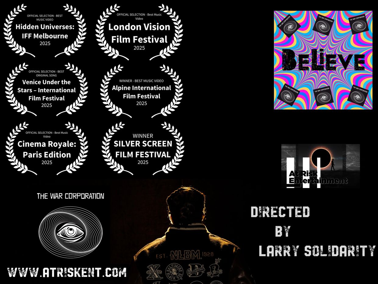 Founded in 2009, At Risk Entertainment is a content creation corporation. We develop and produce motion pictures, series, animation, music, and podcasts. LARRY SOLIDARITY heads up the team. As a writer, director, and producer, he has worked on several indie feature films and participated in Sundance Collab Feature Film Program, Directing: Visual Storytelling in 2023. In 2025, LS Directed "Believe", the winner in the BEST MUSIC VIDEO category at the Alpine International Film Festival in Switzerland. THE WAR CORPORATION is his musical group.